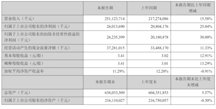 美的集团2025年上半年净利为260亿元,较上年同期的208亿元增长25%;扣非后净利为262.35亿元,较上年同期的201.81亿元增长30%。